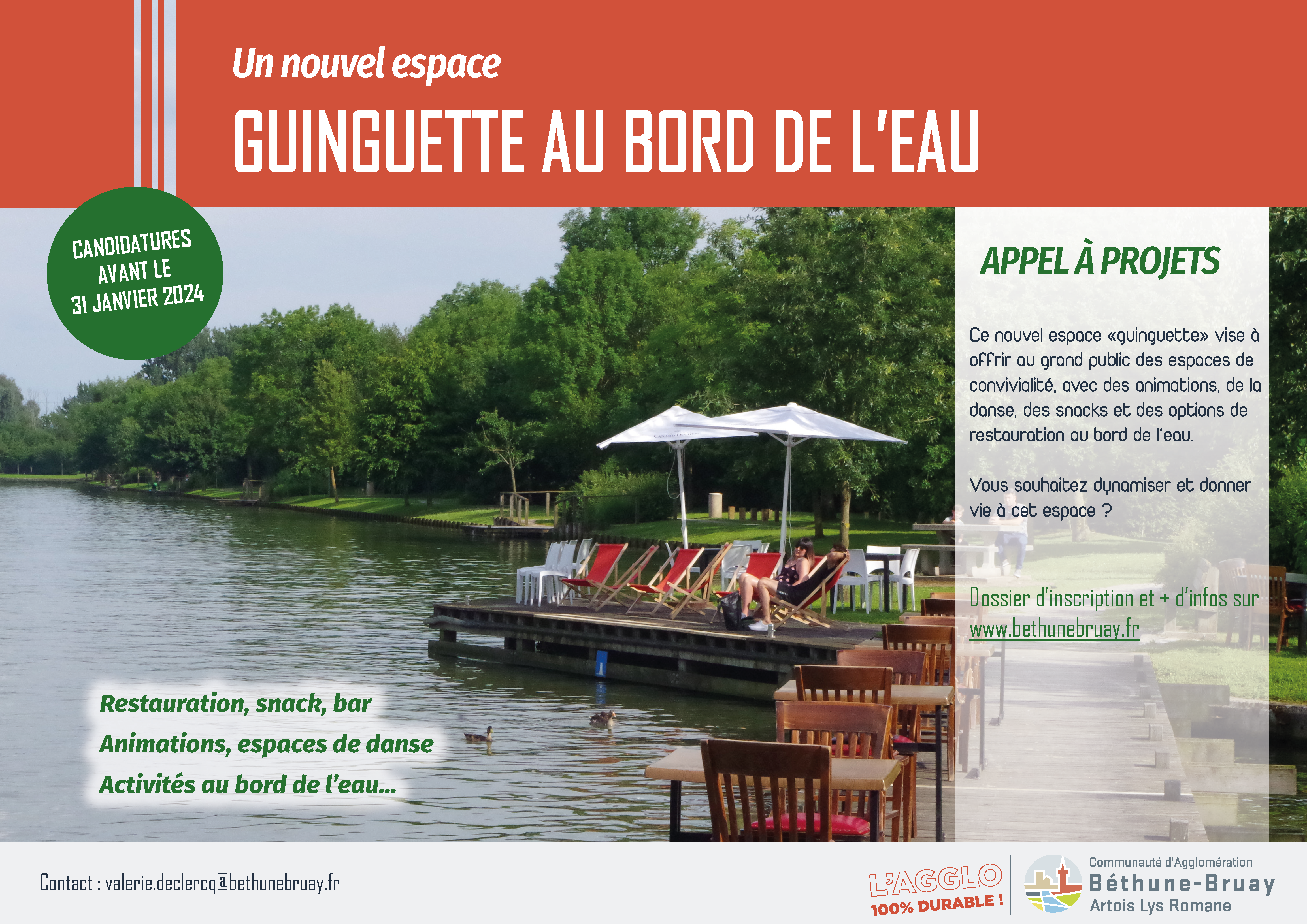 La Communauté d’agglomération de Béthune-Bruay, Artois Lys Romane, en partenariat avec la commune de Guarbecque, lance un nouvel appel à projets qui a pour but de faire vivre et animer un espace « guinguette » à la gare d’eau à Guarbecque, au cours de l’été.