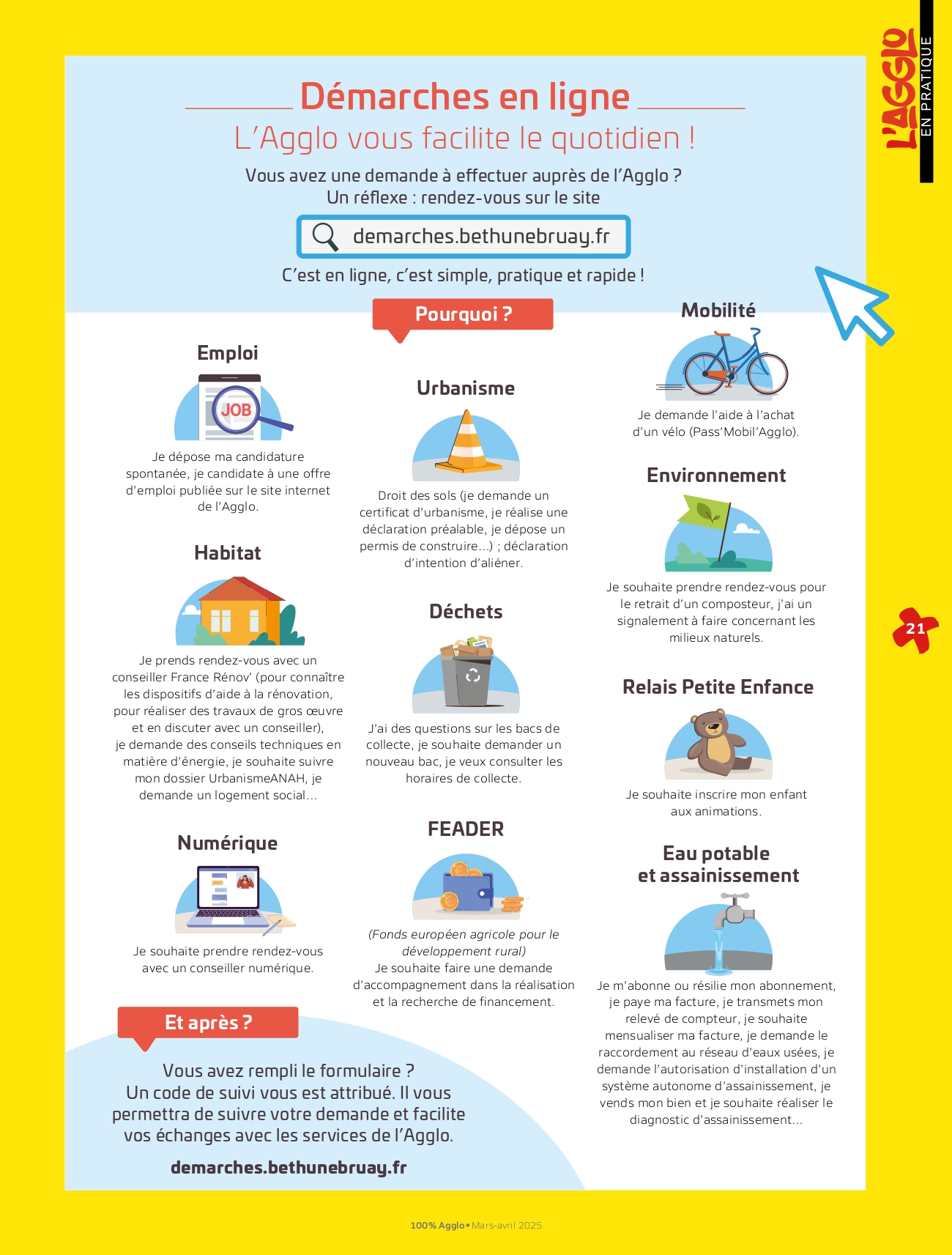 Je prends rendez-vous avec un conseiller France Rénov', je souhaite suivre mon dossier urbanisme, je demande un logement social...