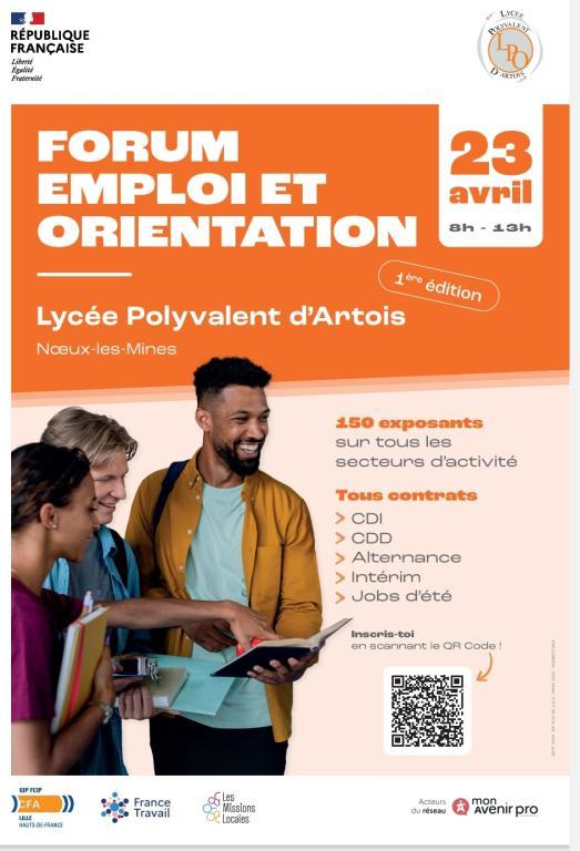 ✅À noter dans vos agendas 👍Forum Emploi Orientation ouvert à tous les jeunes de 15 à 29 ans 👌 ⚠️ Inscription avec le QR CODE