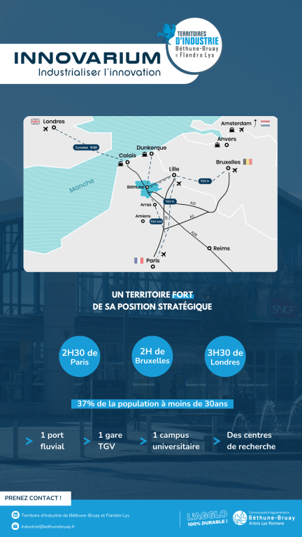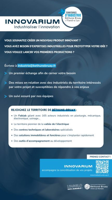 À travers son réseau riche et diversifié de PME industrielles et sa capacité à accompagner le développement de l’innovation, Béthune-Bruay apparait comme le territoire idéal pour rapprocher les entrepreneurs de l’innovation et les acteurs de l’industrie.