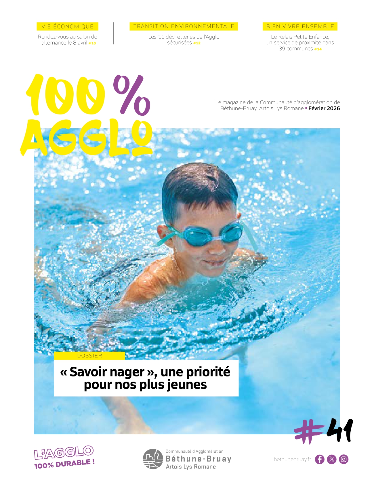 Retrouvez le numéro de février 2026 de votre magazine 100% Agglo. Dans ce numéro, le dossier est consacré au Savoir Nager.