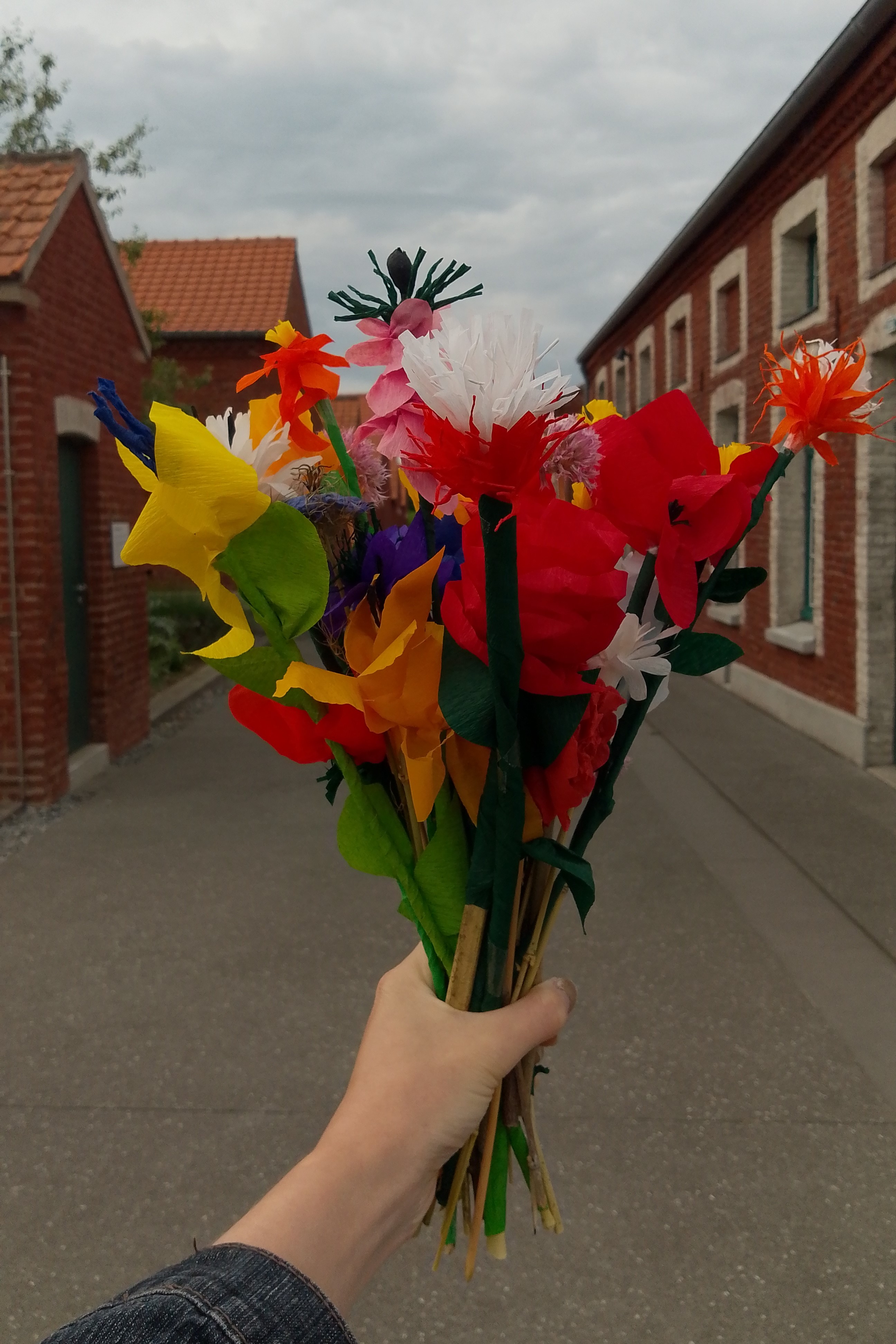 L’artiste Claude Como magnifie les fleurs par son imagination. Muni de papier crépon, à ton tour de façonner des fleurs et d’imaginer la nature de demain !