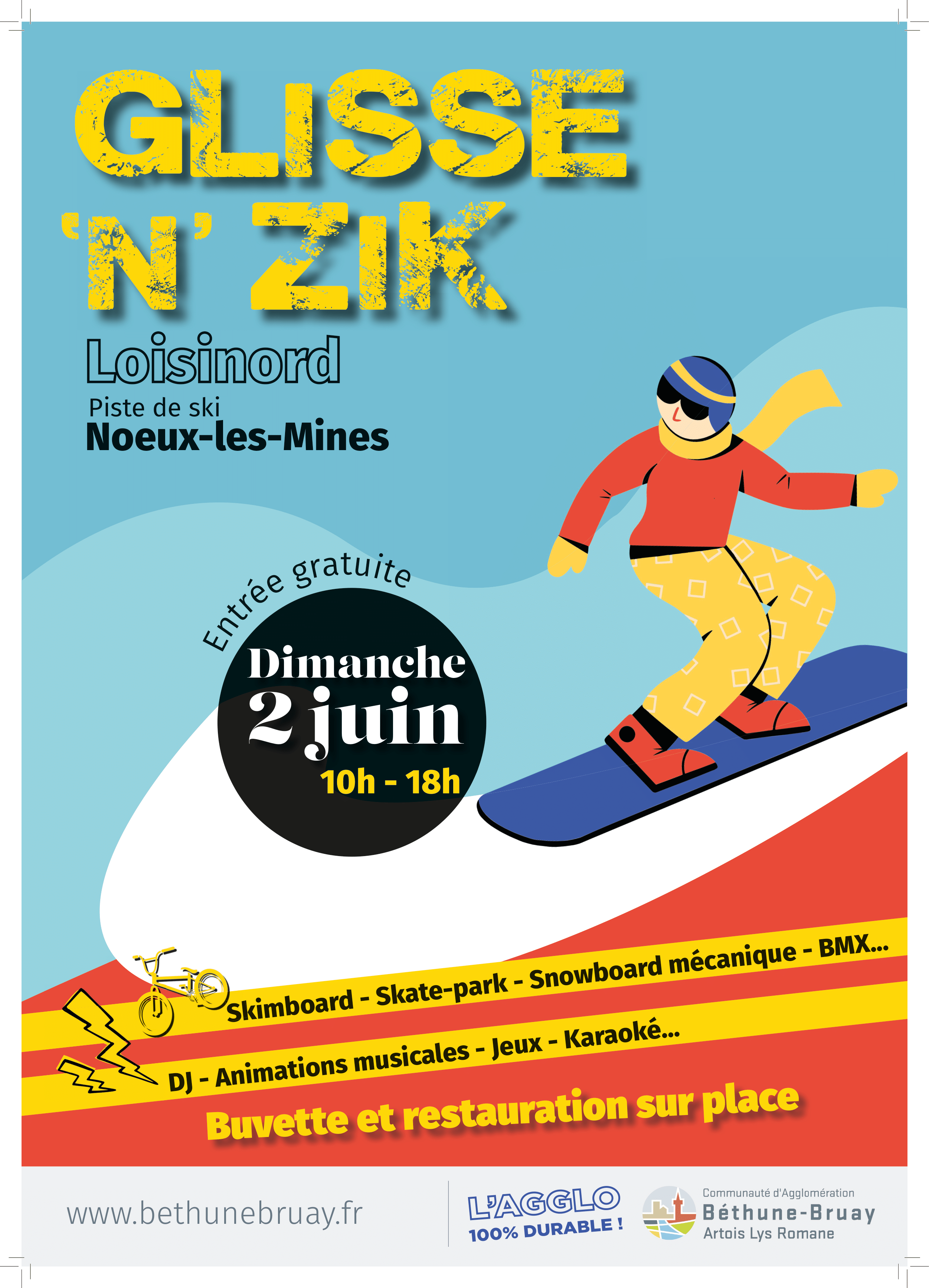 Rendez-vous le dimanche 2 juin de 10h à 18 pour le retour de Glisse'n'zik au stade de glisse de Loisinord !