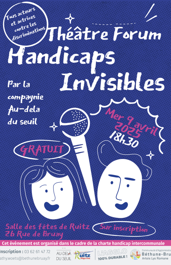 Retrouvez-les le 9 avril prochain à la salle des fête de Ruitz (26 rue de Bruay)dans le cadre de la charte handicap de l'Agglomération pour une soirée consacrée aux handicaps invisibles.