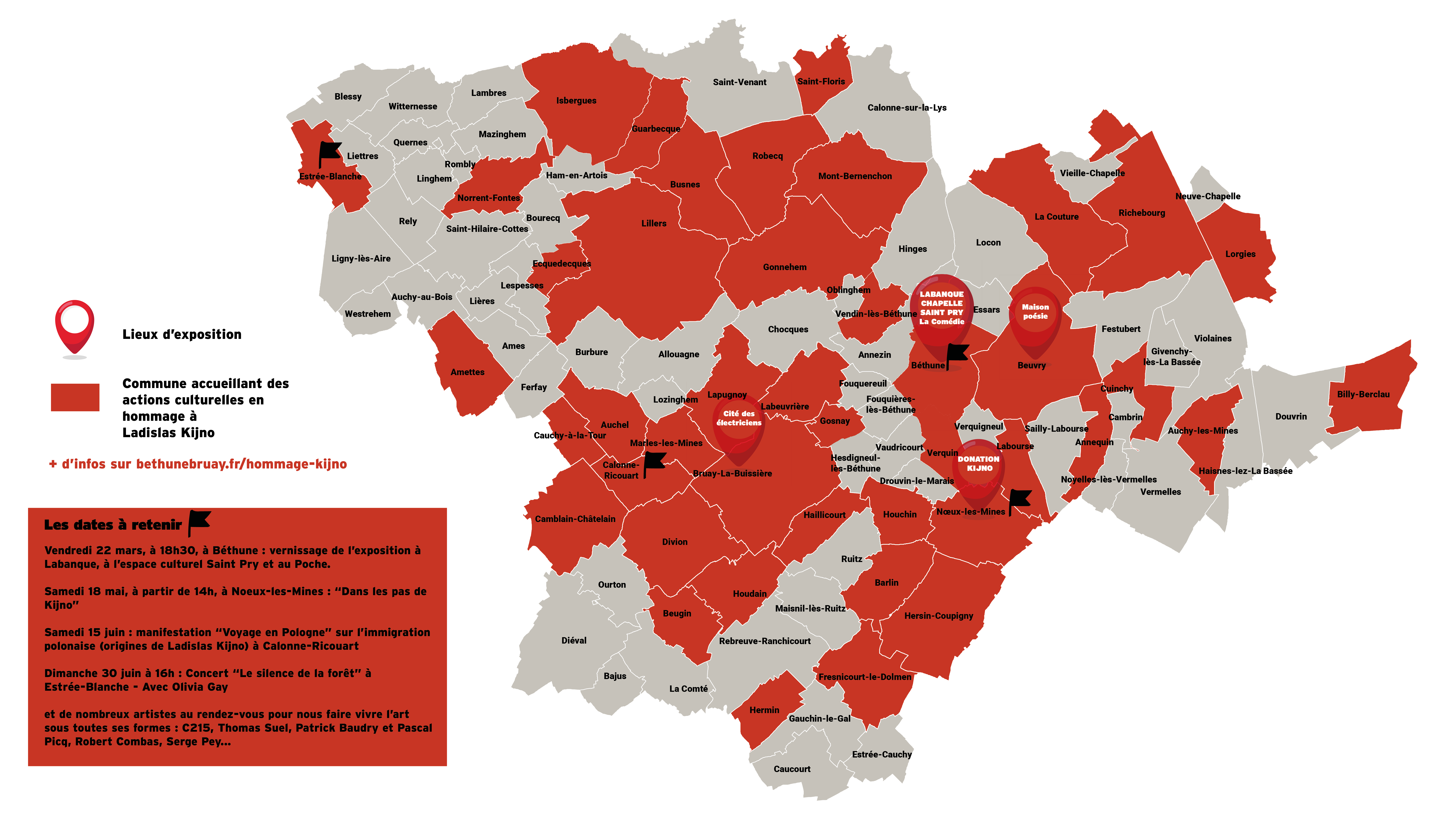 Poussez les portes de la donation Kijno à Noeux-Les-Mines et tentez de percer le mystère du monde. Ladislas Kijno raconte ses voyages, partage ses questionnements sur la vie, le comportement des Hommes, dénonce leur côté obscur et rend hommage aux “Grands Hommes” qui luttent contre ces fléaux. Le voyage, le mouvement, la musique, la fascination pour la Préhistoire, le rôle de l’art font partie des messages engagés de cet artiste. La donation Kijno permet de découvrir cette facette de l’artiste et des